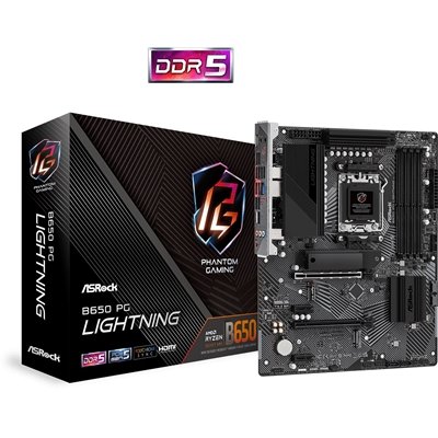 ASRock B650 PG Lightning AMD AM5 Socket Motherboard, ATX, 4x DDR5 Slots, 3x M.2 Sockets, Fitted I/O Shield, 2.5GbE LAN, 1x HDMI Port
