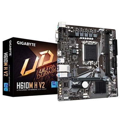 Gigabyte H610M H V3 DDR4 Ultra Durable Intel 1700 Socket Motherboard, Micro-ATX, 2x DDR4 Slots, 1x M.2 Socket, GbE LAN, 1x D-Sub / 1x HDMI Port