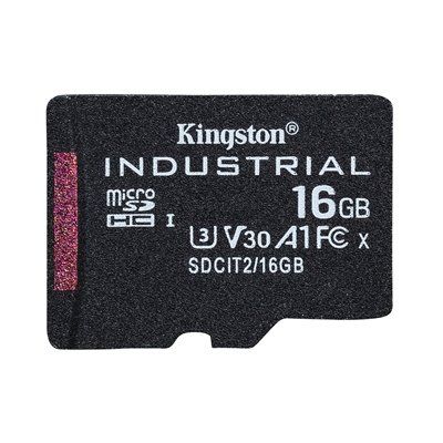 Kingston SDCIT2/16GB Industrial Micro SD Flash Memory Card, 16GB, Class U3 V30 A1, UHS-I U1, Retail Packed