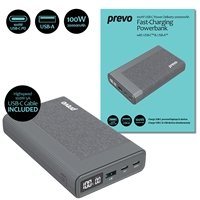 Prevo AD10C 100W USB-C Power Delivery PD 20000mAh Portable Fast-Charging Powerbank with Digital Display, Dual USB-C & USB-A with 100W USB-C Cable Included for Laptops, Ultrabooks, Chromebooks, Smartphones & Tablets