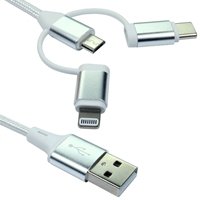 NEWlink 1.2m 3-in-1 USB Charging Cable, USB-A To USB Micro, USB-A To USB-C, USB-A to Lightning – White