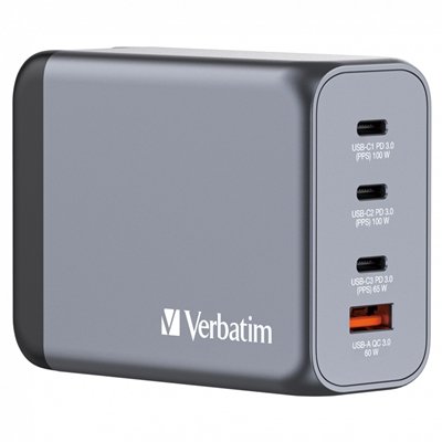 Verbatim (32202) GNC-100 GaN Charger 100W with 2 x USB-C PD 100W / 1 x USB-C PD 65W / 1 x USB-A QC 3.0 (EU/UK/US)