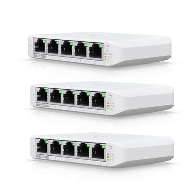 Ubiquiti USW-FLEX-MINI-3 UniFi USW Flex Mini 5 Port Smart Managed POE/USB C Powered Gigabit Network Switch (Triple Pack, No PSU)